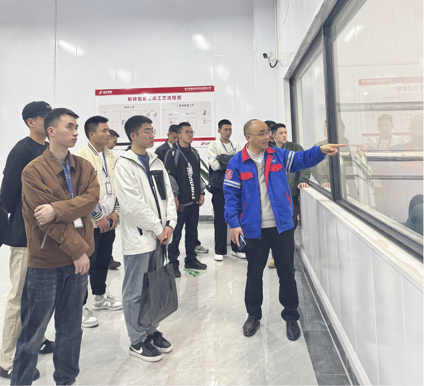 在基地综合部及生产部负责人的陪同下,退役士兵们实地参观了企业生产车间、及办公环境。生产部同事详细介绍了锂电池产品的生产工艺流程、技术要点及岗位操作规范;综合部同事则就新能源行业发展现状、企业文化、人才培养体系及岗位需求等情况进行了全面讲解。