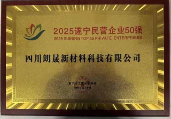 近日,“2025遂宁民营企业50强榜单“正式揭晓。四川朗晟新能源科技有限公司与四川朗晟新材料科技有限公司以突出的产业贡献与综合实力,双双入选!展现出了公司在新能源材料领域强劲的发展活力。